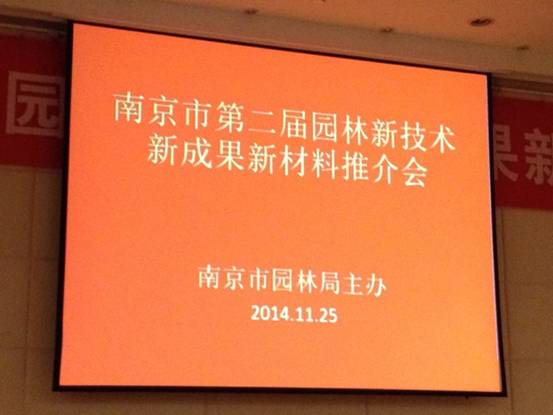 2014年11月25日,南京市園林局在南京國際會議中心大酒店組織召開了“南京市第二屆園林新技術新材料推介會”南京市園林局領導,江蘇省和南京市園林系統專家學者出席了會議,南京市園林系統200多家單位派代表參加了會議。會議簡短熱烈,與會代表就園林專業的新技術新材料進行了良好的溝通與交流。