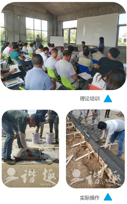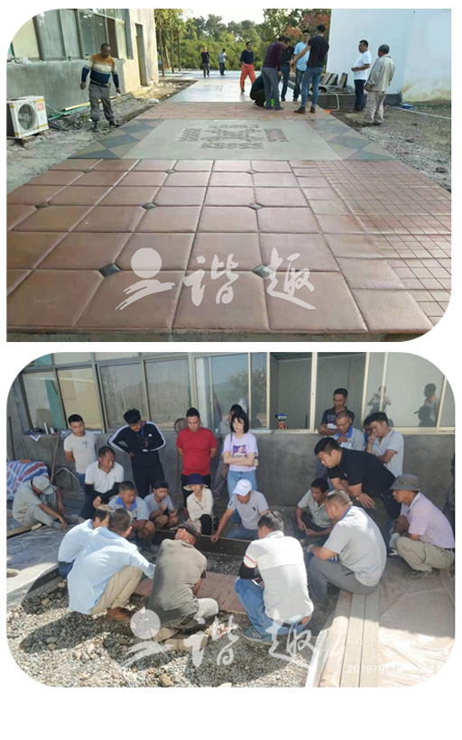 培訓(xùn)采用理論結(jié)合實(shí)際的方法逐步推進(jìn)。理論培訓(xùn)讓所有參加培訓(xùn)的人員了解熟悉彩色混凝土的科學(xué)原理。從最根本的方面了解,這樣可以讓人知其然也可知其所以然,更好的提高施工技術(shù)。現(xiàn)場實(shí)際操作讓處于一線施工現(xiàn)場的員工了解更多的施工技術(shù),施工方法。改掉以前的一些不正確,效率不高的施工方法。從而達(dá)到更高的施工技藝,為以后的客戶提供更加優(yōu)質(zhì)的服務(wù)。