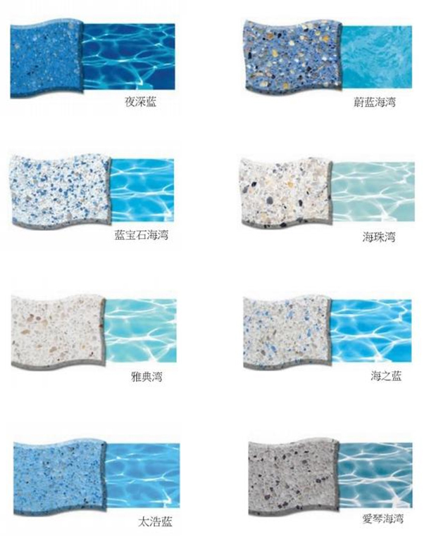 可用于各種色彩及紋理材質(zhì)。不同的色彩及骨料型號可以良好的滿足(適用于)任何設計要求。為泳池的擁有者提供了可替代傳統(tǒng)白色涂料的、非常耐用且極具吸引力的彩色涂料。