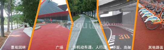 冷拌彩色瀝青混凝土面層系統采用冷拌合冷施工工藝,對色粉耐高溫性能基本無要求,降低了混合料色粉的門檻,從而使彩色瀝青在顏色的選擇上可以根據要求任意調配,增加了彩色路面的色彩多樣性。而且紅、橙、黃、綠、藍等顏色的成本基本接近。