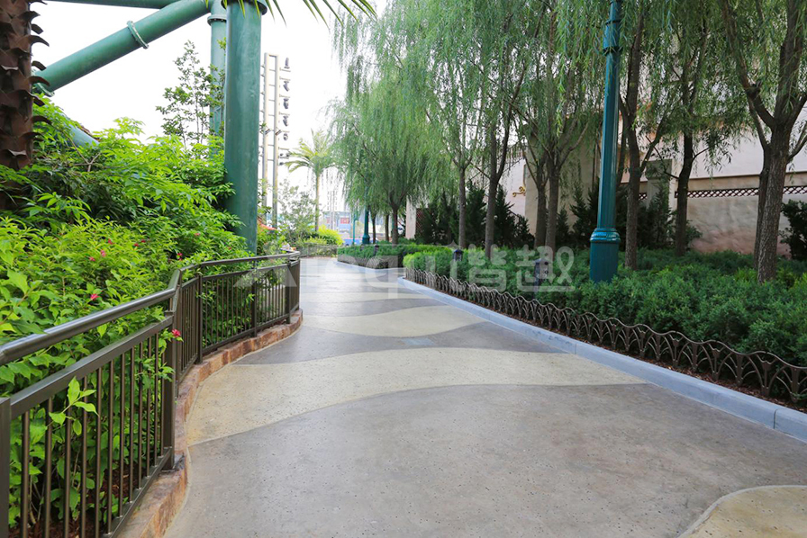 彩色混凝土鹽巖面藝術地坪被廣泛應用于各類游樂園、主題公園、景觀地坪等地面鋪裝。